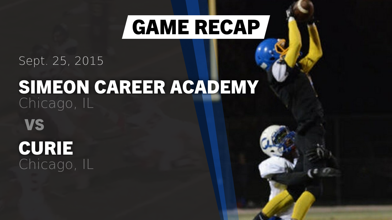 Sep 1 2018 400pm. Boys Varsity Football - Simeon Career Academy - Chicago Illinois - Football - Hudl Simeon Career Academy - Boys Varsity Football Chicago IL 239498 views 482 followers Timeline Highlights. Dante Culbreath - Head Coach.